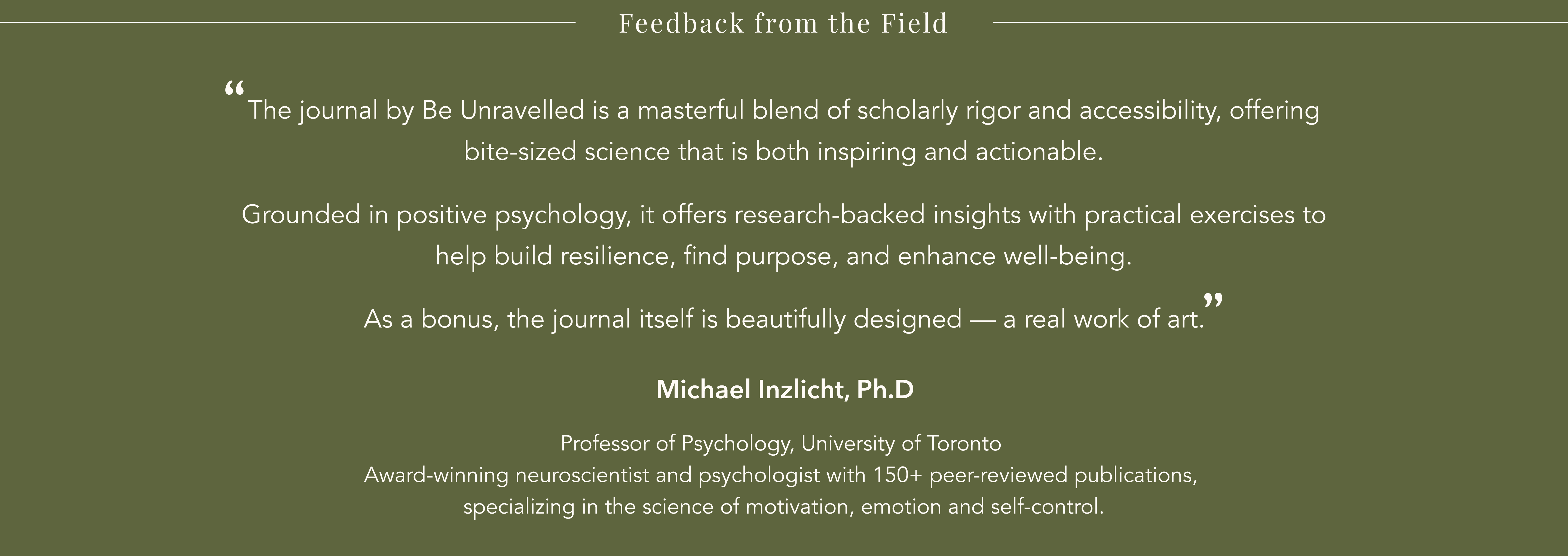This journal explores research on twelve topics related to the PERMA model of human flourishing, from the science of flow state and resilience, to humor and purpose. Gain insights that deepen your understanding of the human experience and illuminate a path towards fulfillment.
