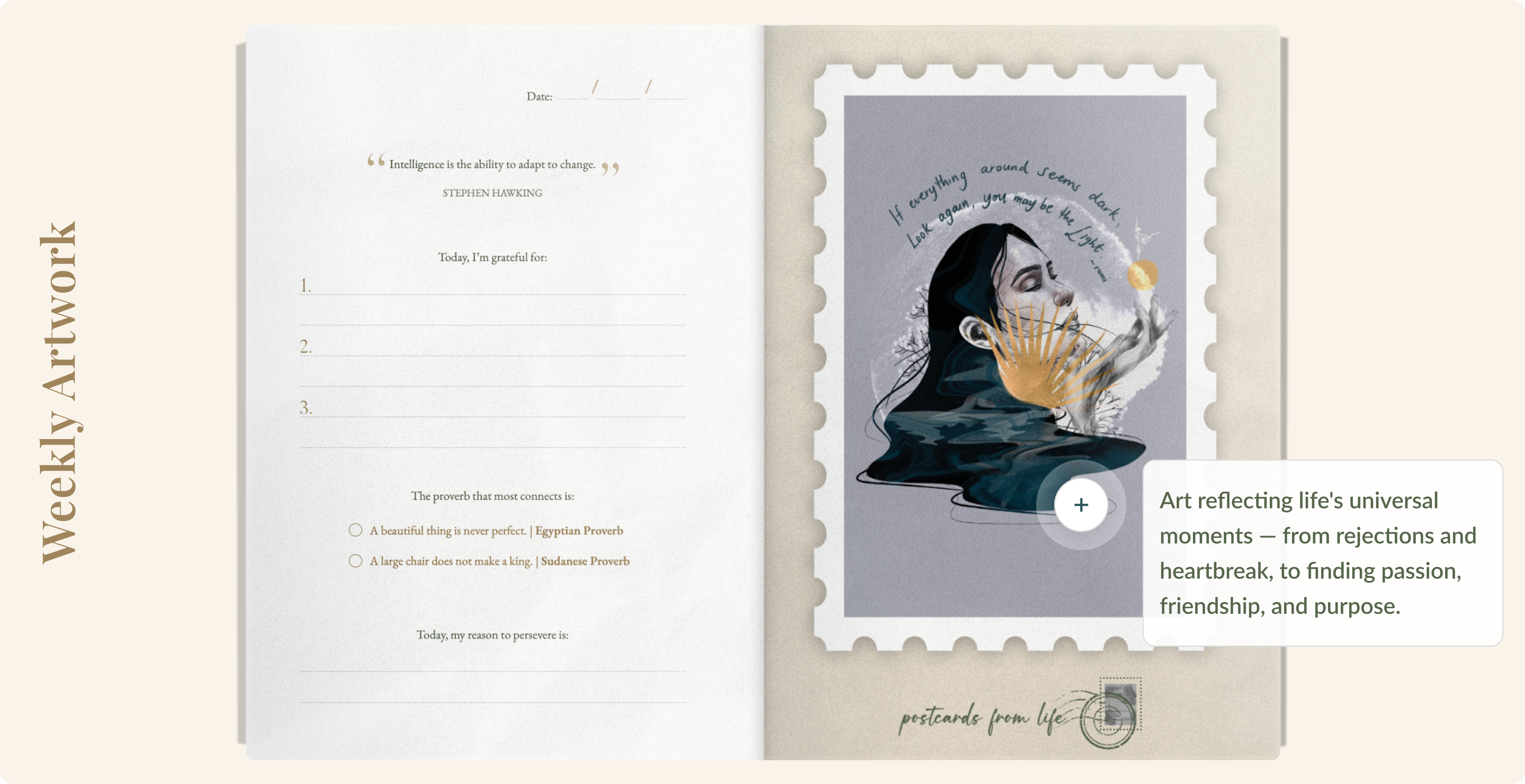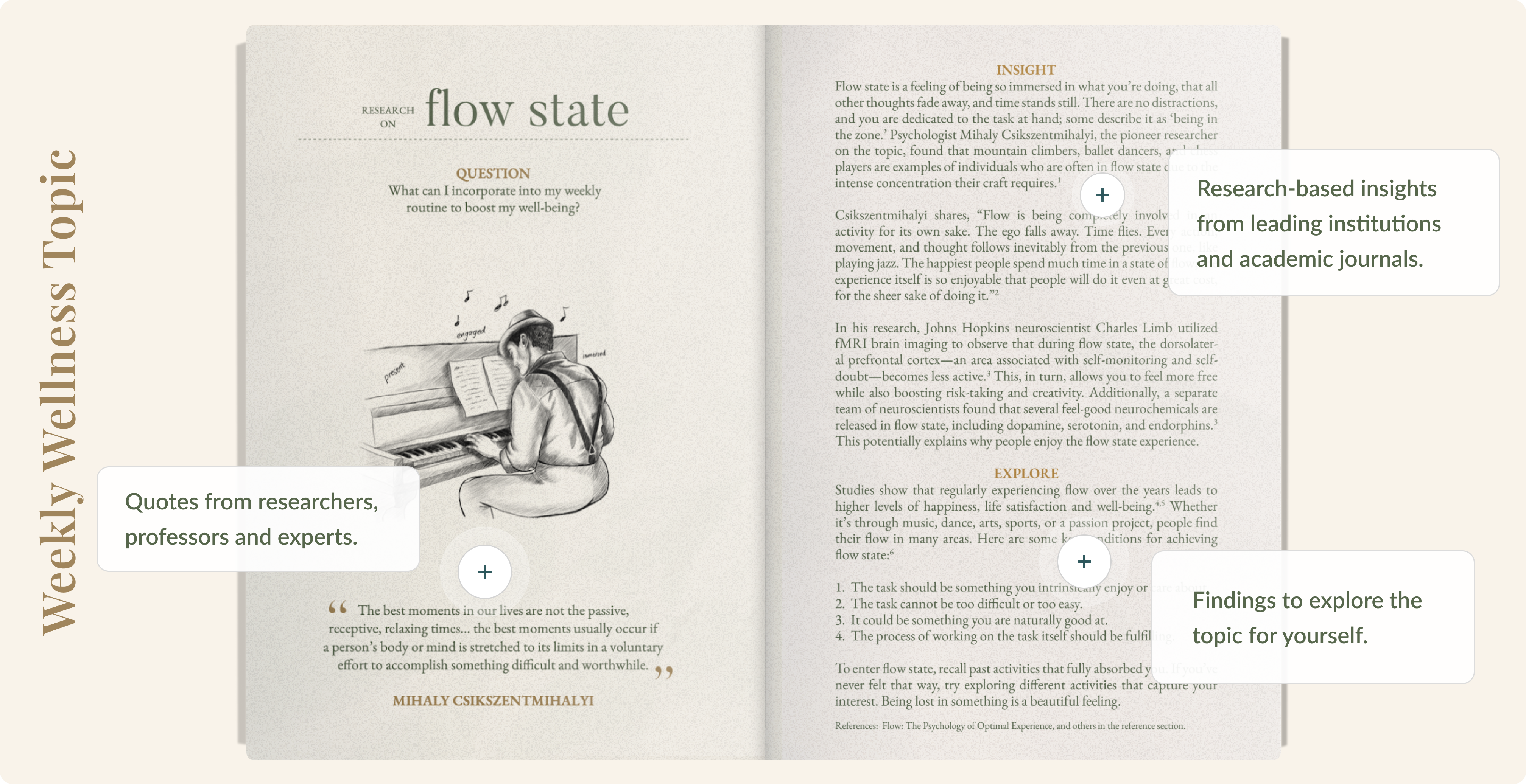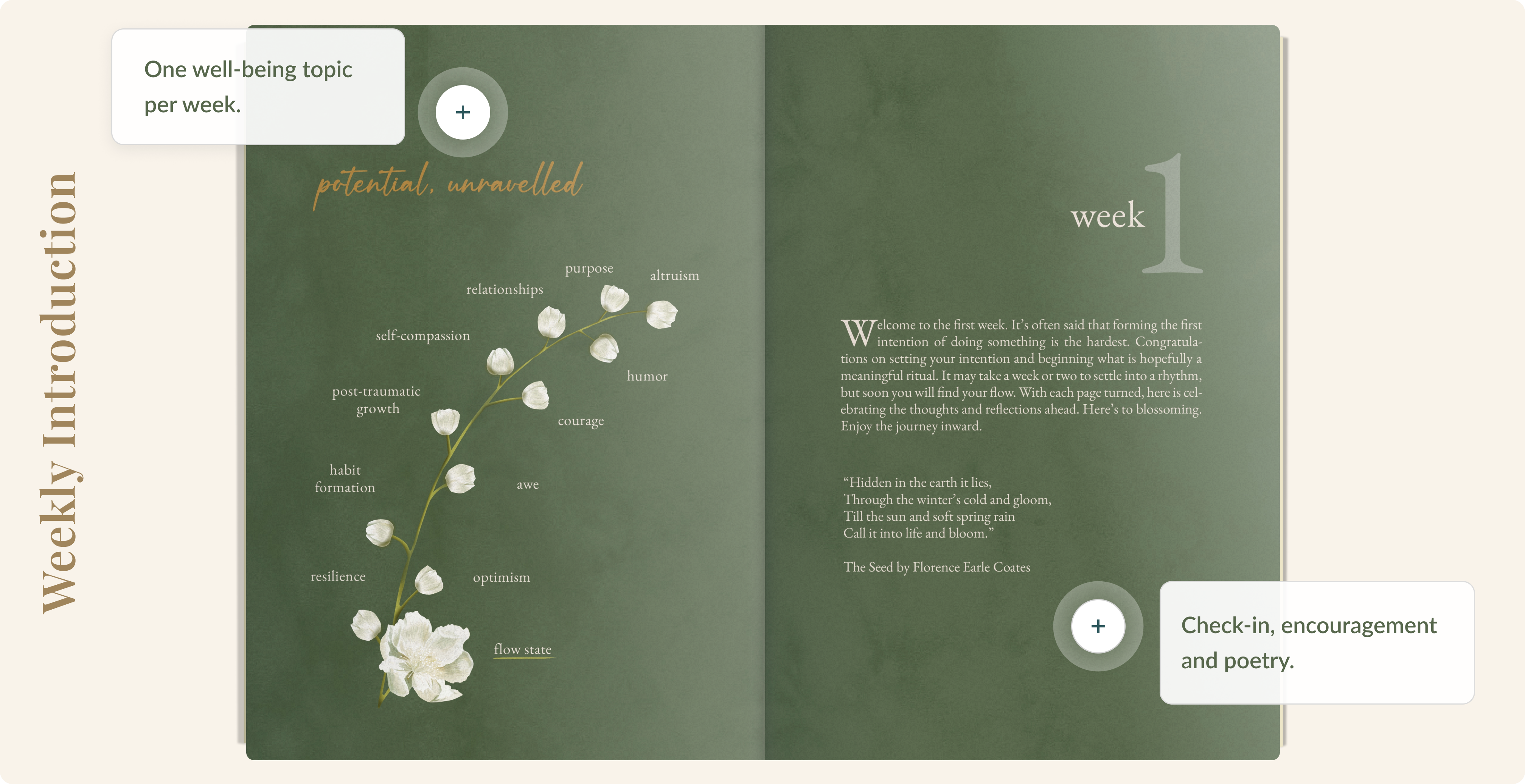 Discover a ritual that nurtures your potential through reflection, learning, and inspiration. Curated content from around the world meets research-backed insights on well-being and human flourishing. Experience a more self-aware, motivated and fulfilled you.